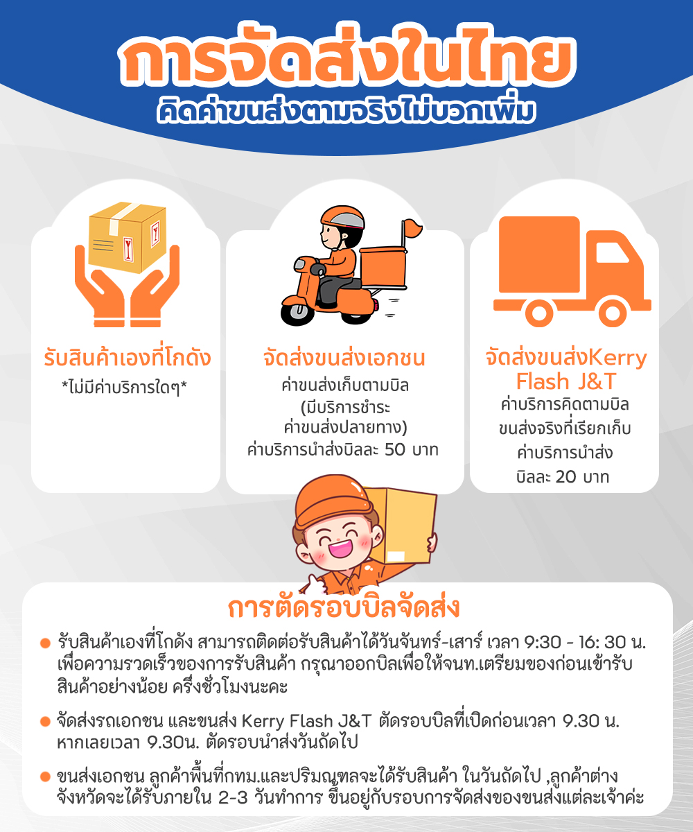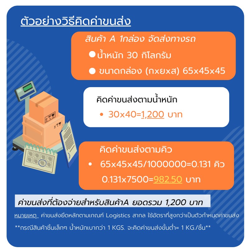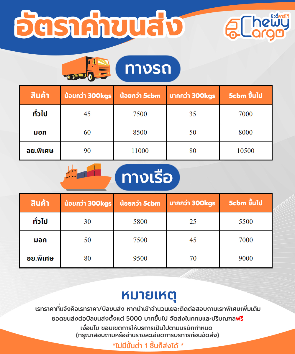 หมายเหตุ ค่าขนส่งยึดหลักตามเกณฑ์ Logistics สากล ใช้อัตราที่สูงกว่าเป็นตัวกำหนดค่าขนส่ง